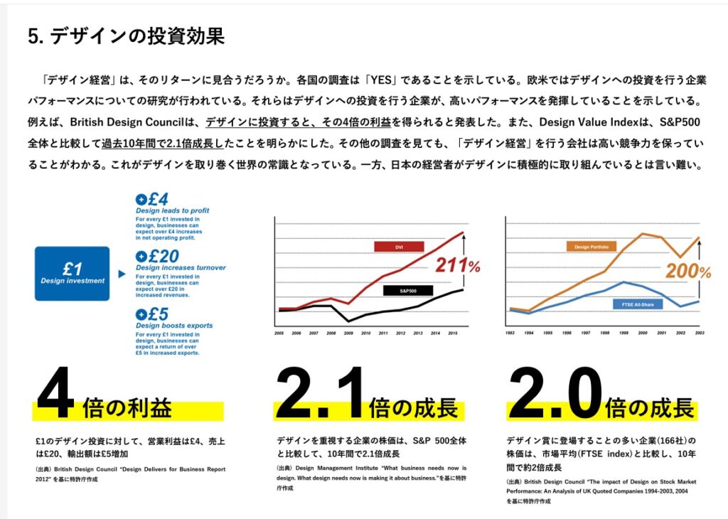 2018年の経済産業省の調査では、デザインに投資すると売り上げが4倍になるというデータもあります!
