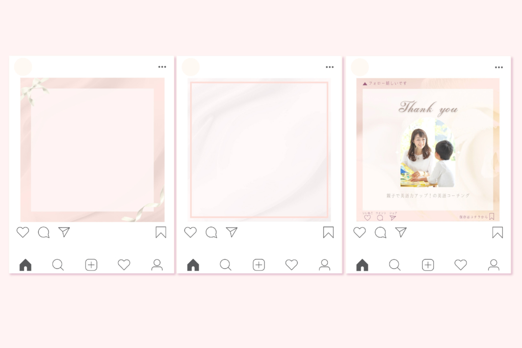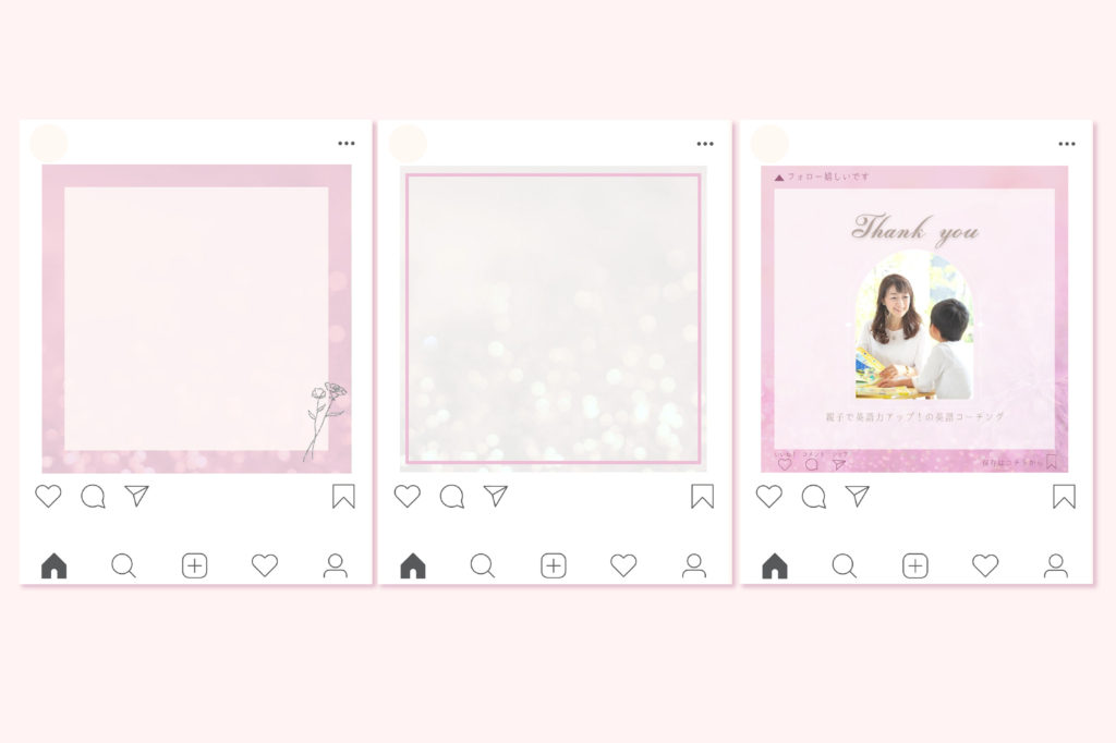 親子で英語力アップ!の英語コーチングをされている遥様の文字投稿用のインスタグラムテンプレートを表紙・内容投稿・最終画像を制作させていただきました。