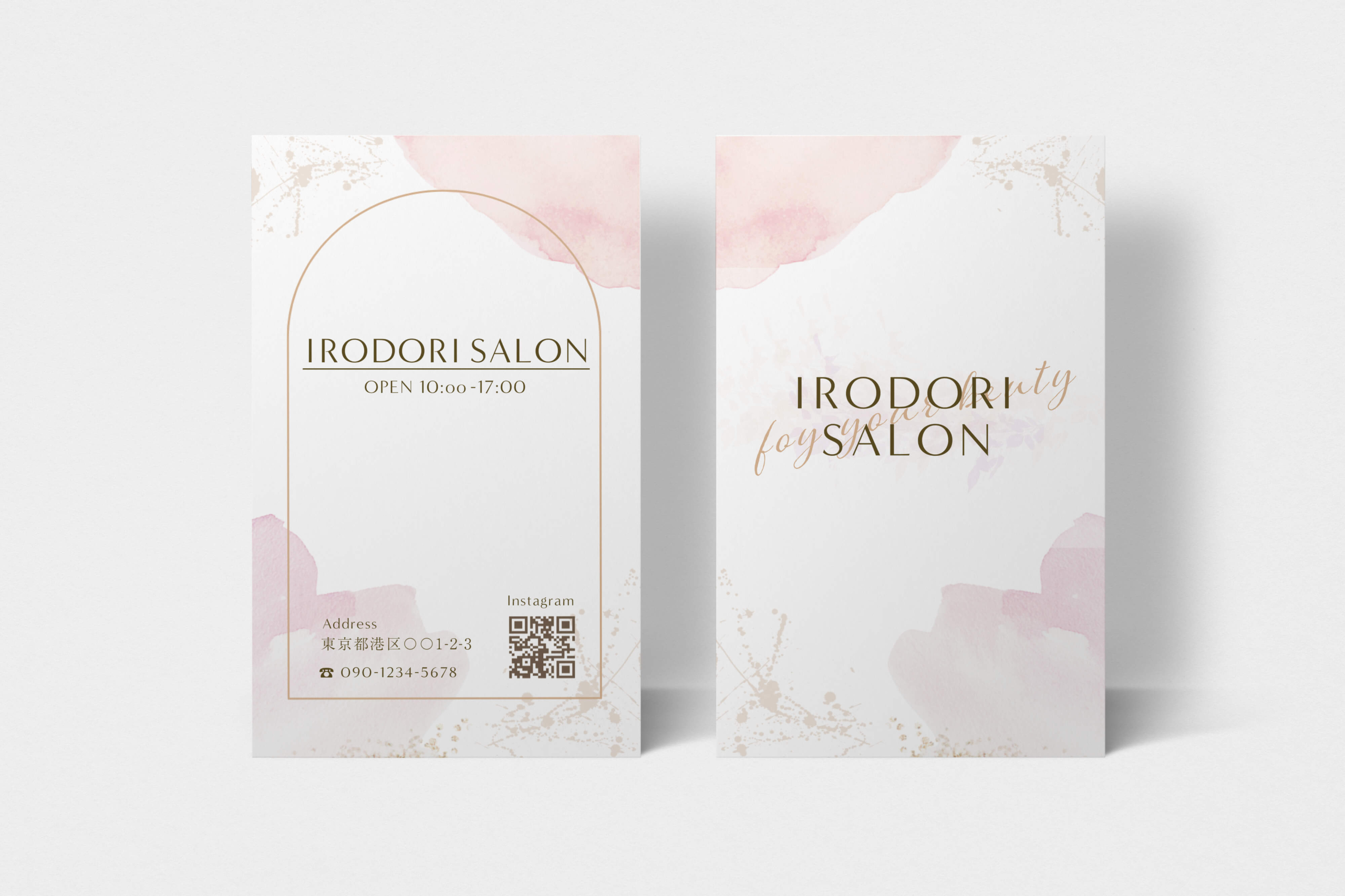 フォントは高級感のあるもので大人の女性を意識し、水彩模様で柔らかさを出すことで親しみやすさをプラスしています。