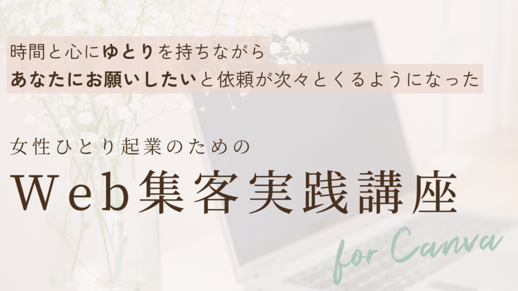 女性ひとり起業の方向けに、Canvaで効果的な画像やWebツールの導線を整えながら、集客を実践していく講座を開講中です!