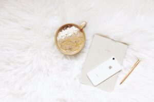 • white iphone gold colored pen and round gold colored cup